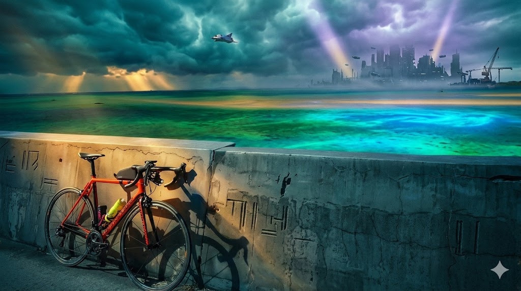 同一写真(沖縄の海+赤いロードバイク)を素材に、世界観をガッツリ変える検証をしてみました。