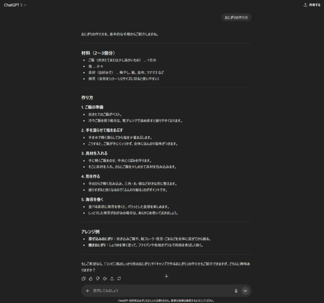 感覚としてはChat GPT3.5のような感じでしょうか、とても軽いけど侮れない生成AIです。