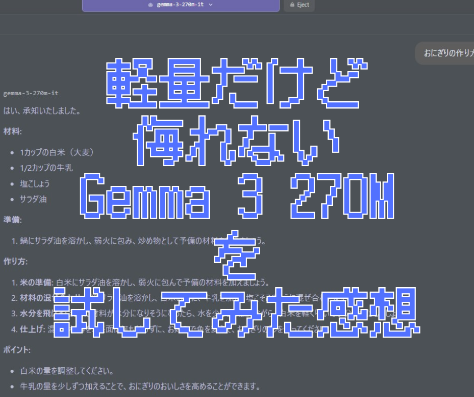 そんな「Gemma 3 270M」を試してみたので、今日はその感想をシェアします。