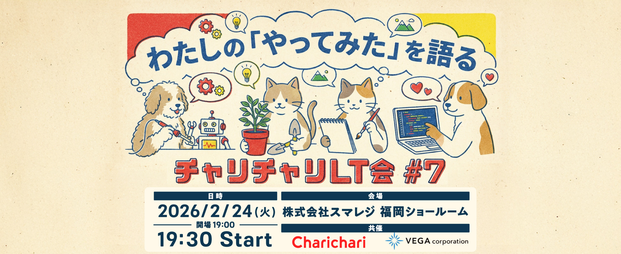 今日は、「チャリチャリLT会 #7 チャリチャリ×ベガコーポレーション『わたしの「やってみた」を語る』」に参加してきました。